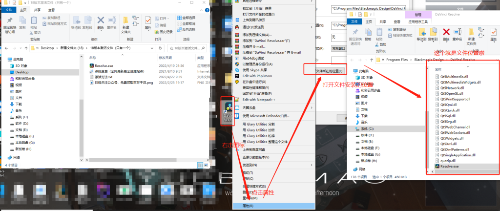 安装完桌面会生成DaVinci Resolve图标右击它->属性->打开文件所在的位置