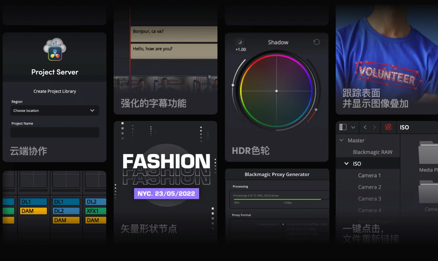 版本18还添加了更多插件,例如深度贴图生成、表面跟踪、快速噪波和去溢色等。此外,新版软件还改进了美颜效果、边缘检测以及镜头反射效果。深度贴图FX可以自动生成一个场景的3D蒙版,用于调色或者在背景或前景添加特效。表面跟踪器特效可以跟踪纹理表面的移动情况,用于在T恤、旗帜或人物面部应用图像!不论是快编、剪辑、Fusion还是调色页面,都可以应用所有Resolve FX特效并进行动画处理!