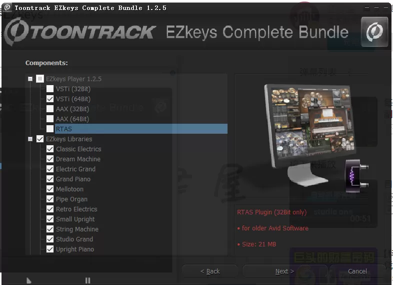 EZkeys二代自带大量MIDI库,由专业的钢琴家演奏。演奏包括日益复杂的歌曲片段,覆盖所有主流音乐流派如:摇滚、流行、乡村、福音、蓝调和Funk,这个音色库不仅是一种创造性的提高,它还是你未完成歌曲的一个尚未开发的灵感源泉。