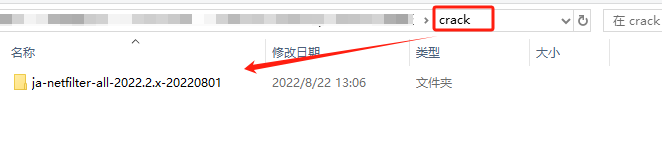 回我们解压的文件,访问crack文件夹,ja-netfilter-all-2022.2.x-20220801是我们的激活补丁文件夹